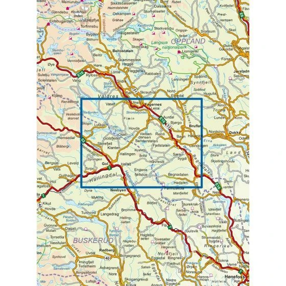 Norwegische topografische Wanderkarte für Süd-Valdres mit Fagernes, Gol, Rauddalsfjellet, Meitebekkfjellet og Golsfjellet