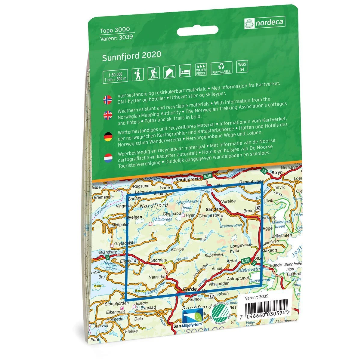 Detaillierte Wanderkarte für Sunnfjord im Maßstab 1:50.000 Blatt 3039 aus der Serie Topo 3000 von Nordeca