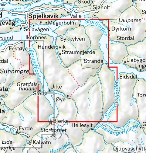 Größere enthaltene Orte, Berge, Punkte: Magerholm, Solavagen, Ikornnes, Sykkylven, Hundeidvik, Straumgjerde, Stranda, Urke, Saebo, Oye, Sunnylvsfjorden, Storfjorden