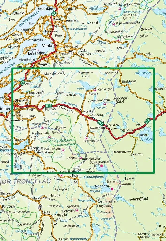 Enthaltene Orte: Stjørdalshalsen, Meråker, Handöl, Mebonden, Kopperå, Åsen, Storlien, Steinfjellet, Fongen / Lopmesvaerie, Skarva / Tjohkeleh, Fonnfjellet / Gaebli, Kjøhaugen.