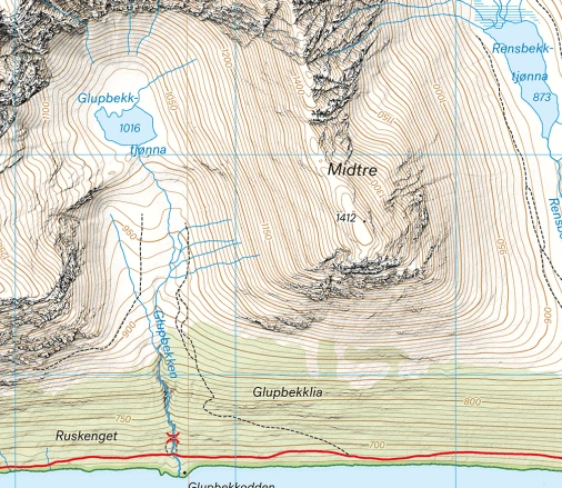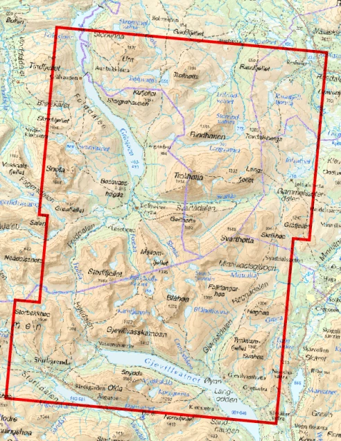 Größere enthaltene Orte, Berge, Punkte: Tindfjellet, Snota, Trollhotta, Jodalshytta, Svarthotta, Trollheimshytta, Gjevillvasskamban, Gjevilvasshytta