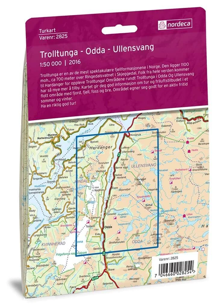 Turkart 2825 Wanderkarte fĂĽr Trolltunga, Odda – Ullensvang im MaĂźstab 1:50.000 von Nordeca