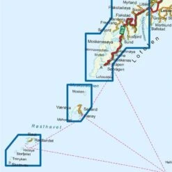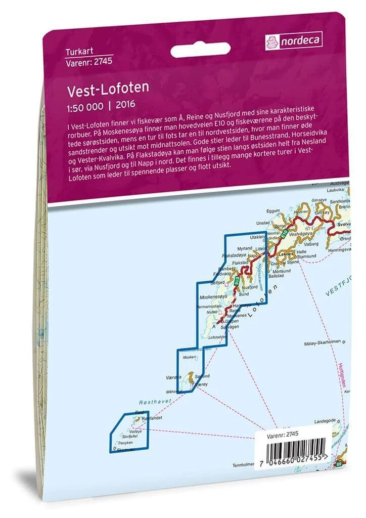 Detaillierte Wanderkarte fĂĽr Vest-Lofoten in Norwegen im MaĂźstab 1:50.000 von Nordeca.