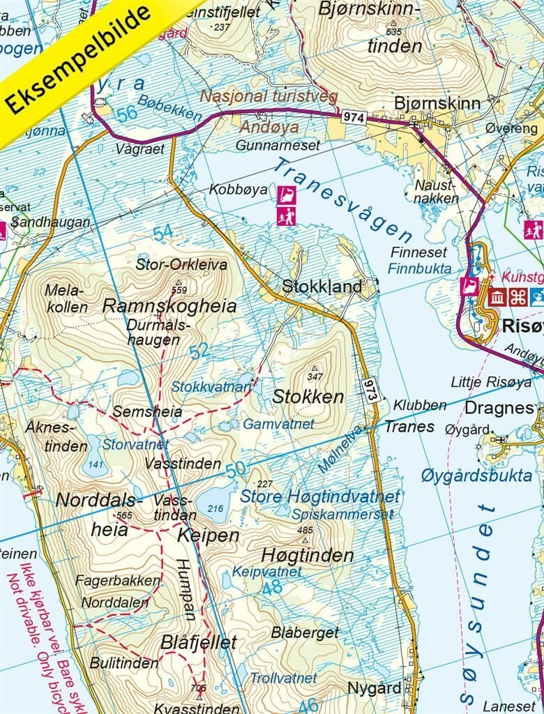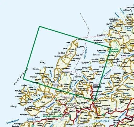 Detaillierte Wanderkarte für Vesteralen-Hinnoya Nord in Norwegen im Maßstab 1:100.000 von Nordeca.