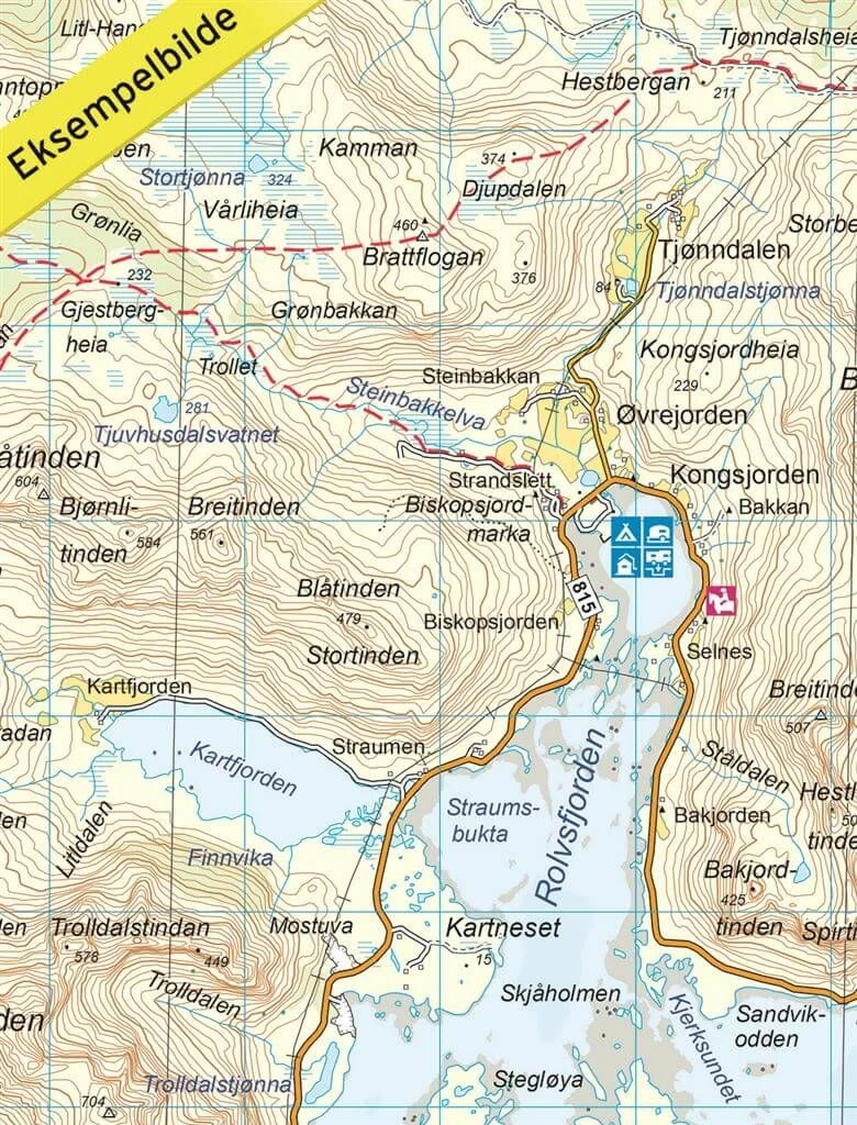 Die Legende ist 2-sprachig (englisch und norwegisch). Die touristischen Informationen sind allerdings nur auf norwegisch.