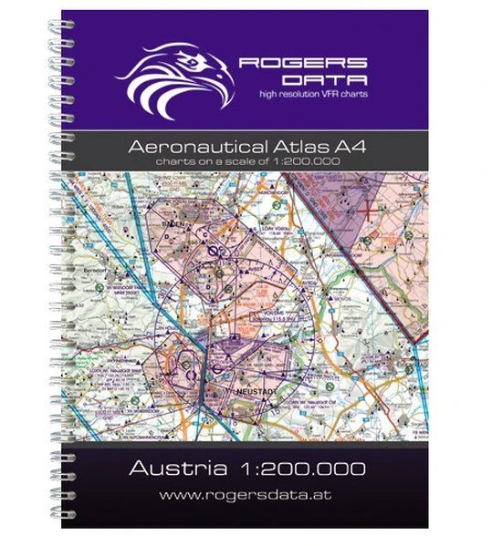 Luftfahrtatlas im Format DIN A4 mit Spiralbindung, Karten im Maßstab 1:200.000