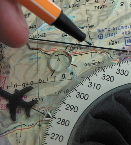 •Berechnen von Flugzeit, Entfernung und Kurs mit einem Gerät