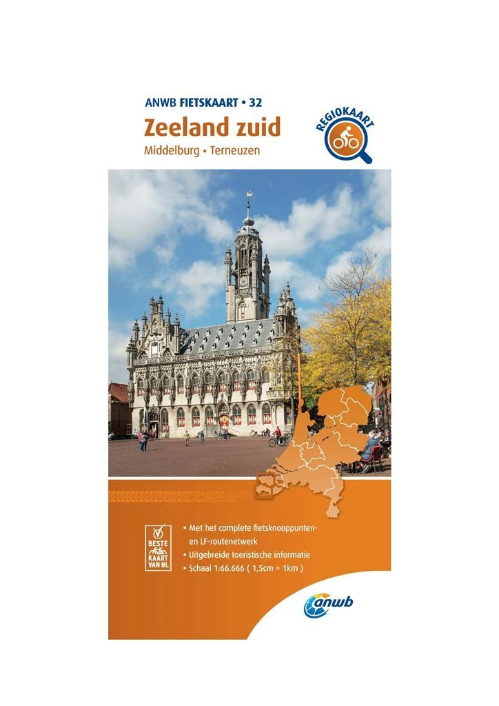 Radwanderkarte Zeeland Süd im Maßstab 1:66.666 von ANWB Bl. 32